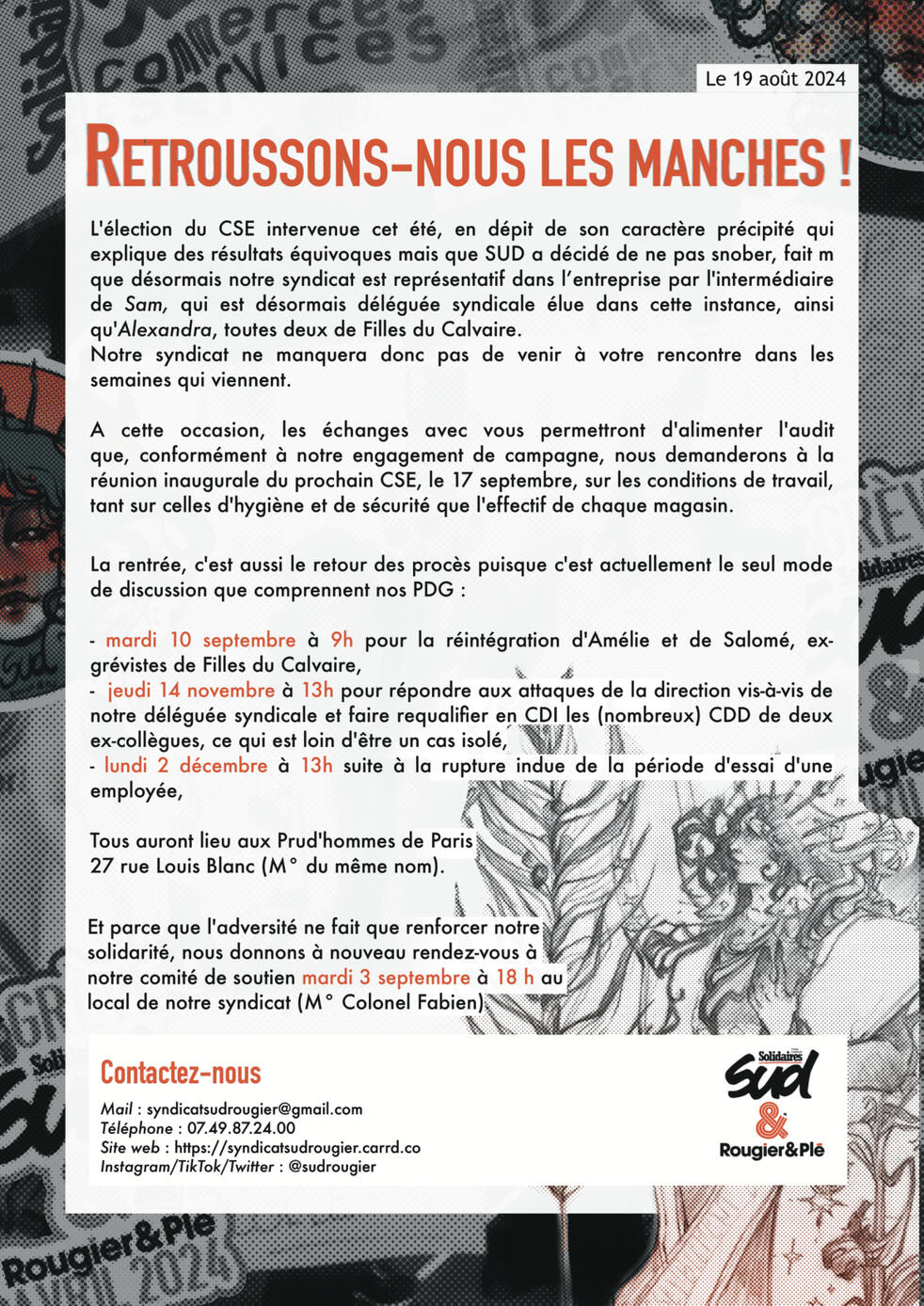 - mardi 10 septembre à 9h pour la réintégration d'Amélie et de Salomé, ex-grévistes de Filles du Calvaire,